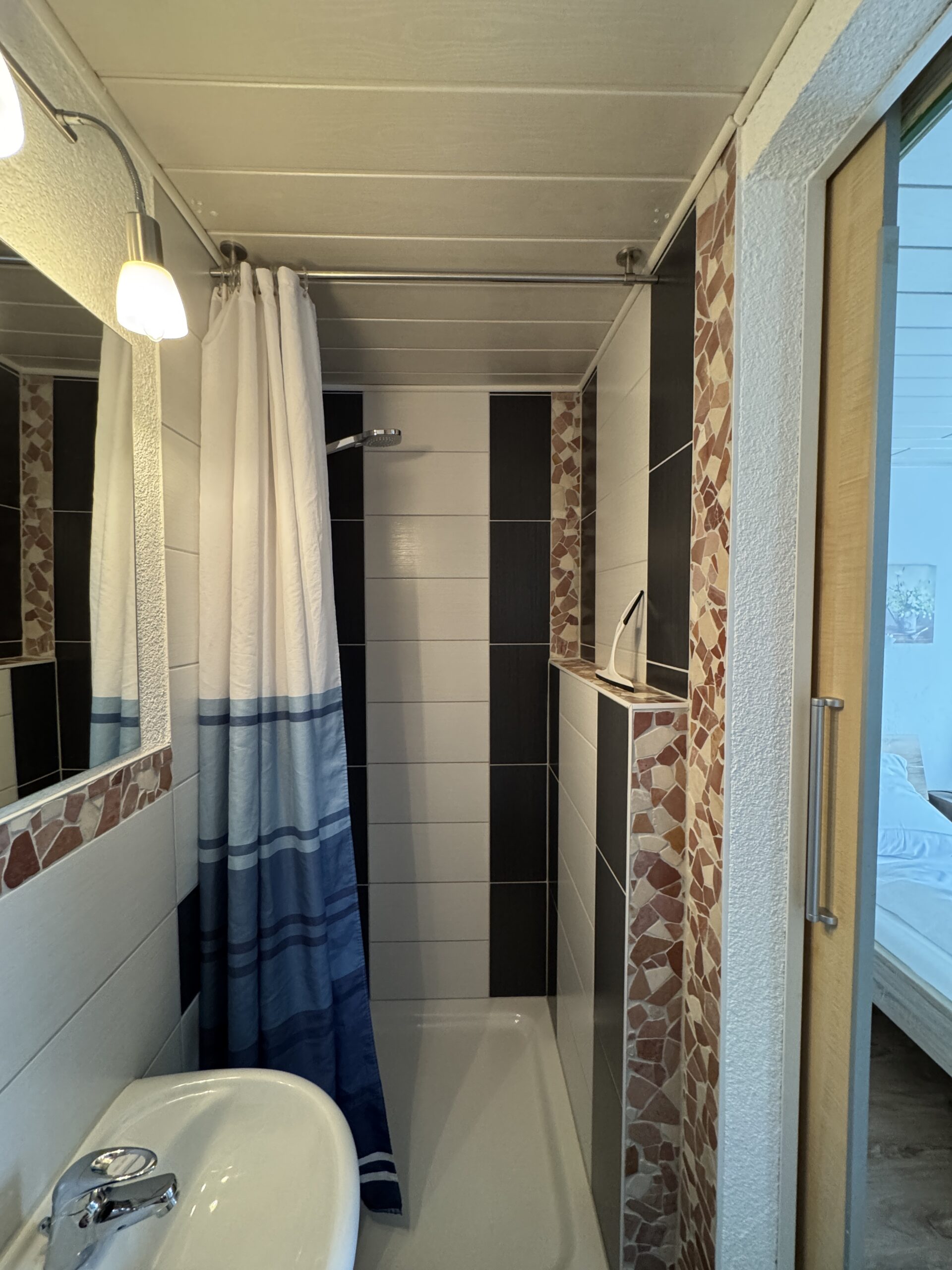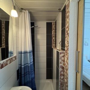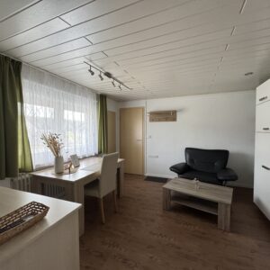 Der Wohnbereich ist als gemütliche Wohn-Essküche gestaltet und lädt zum entspannten Verweilen ein. Das separate Schlafzimmer bietet Ruhe und Rückzug; das integrierte Badezimmer ist funktional ausgestattet und verfügt über eine Dusche, ein Waschbecken sowie eine Toilette.