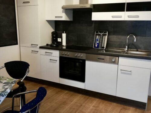 Eine Erdgeschoss-Wohnung mit Wohn-Essküche und ein Schlafzimmer